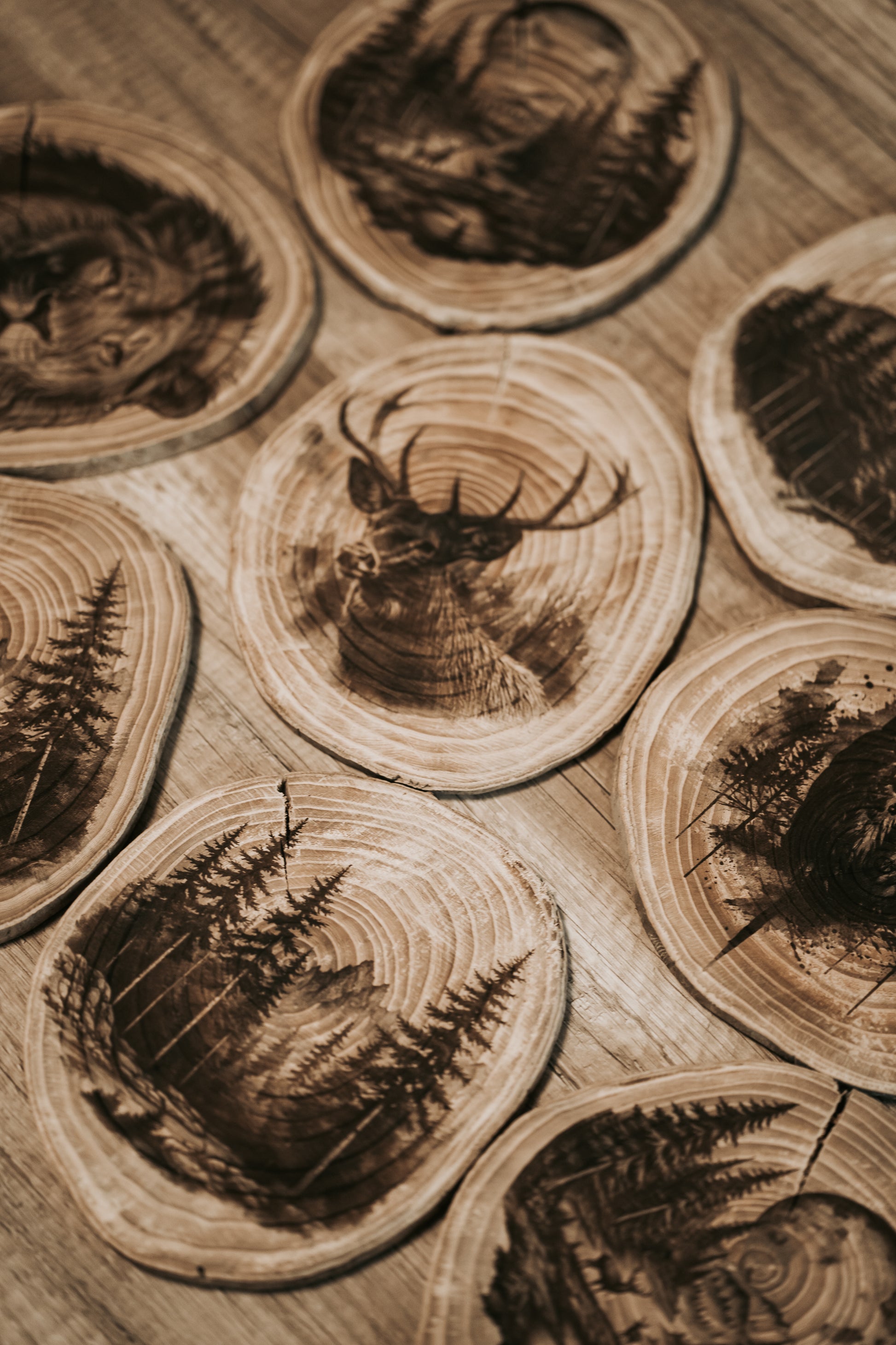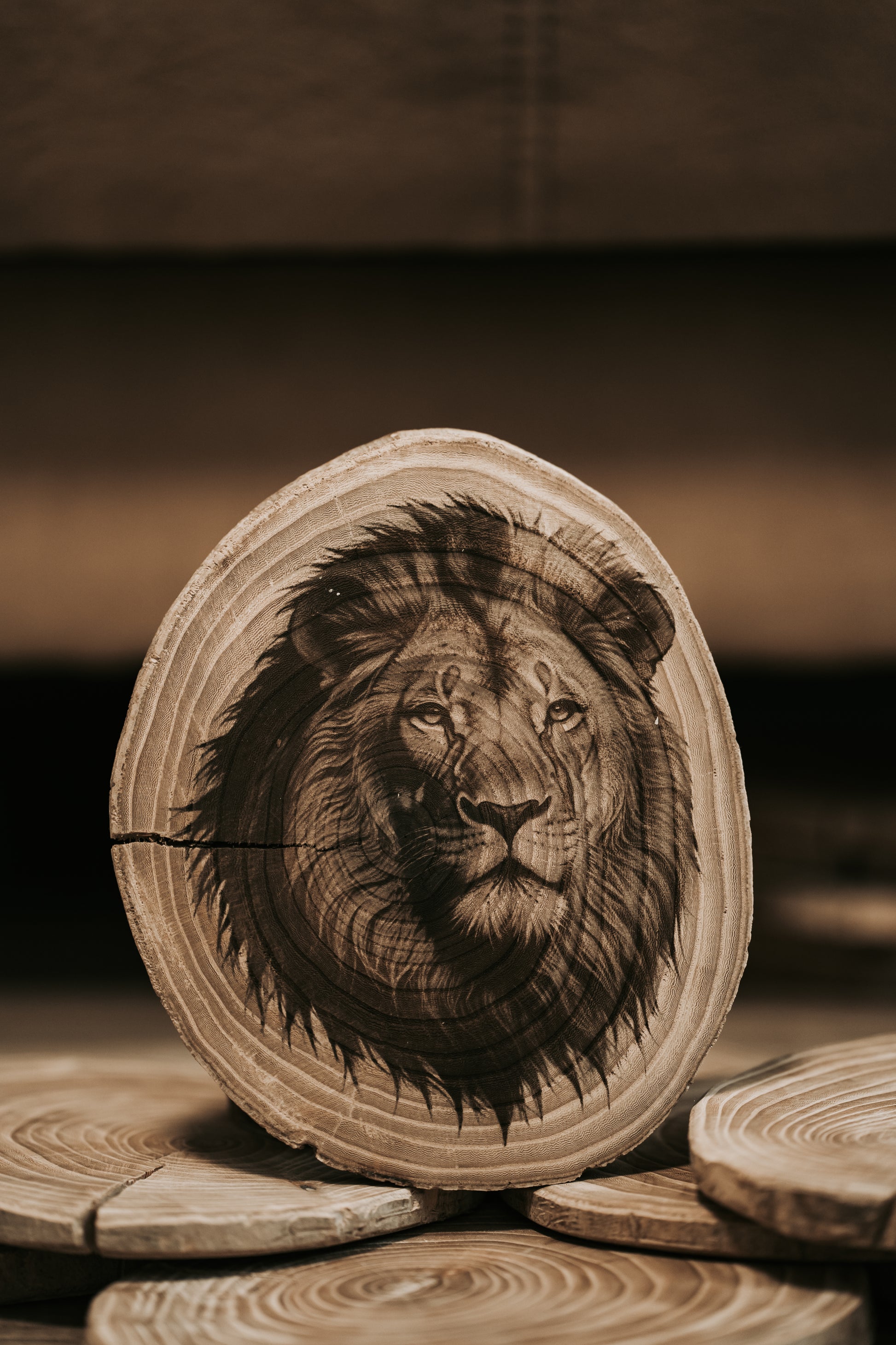 Egyedileg készített, minőségi fa korong, oroszlán mintával