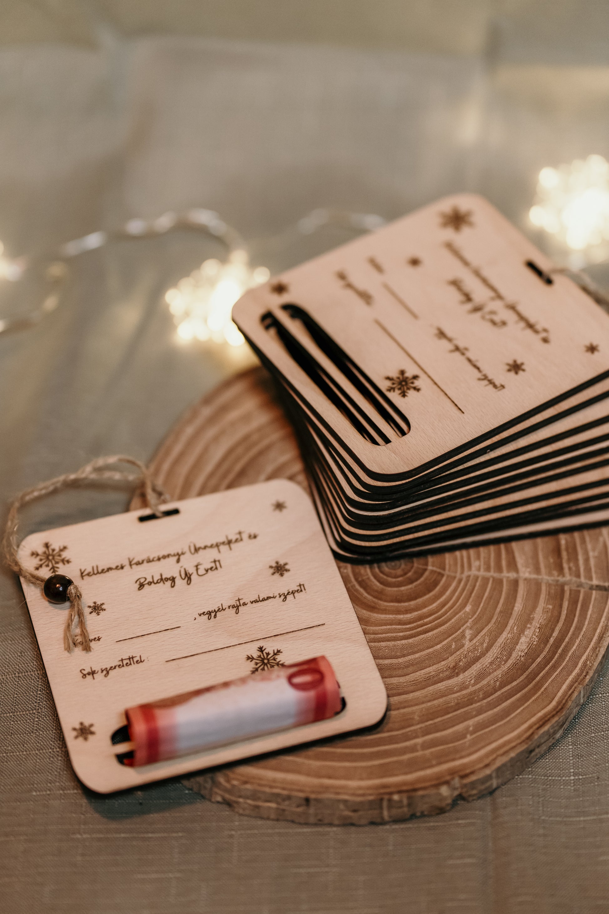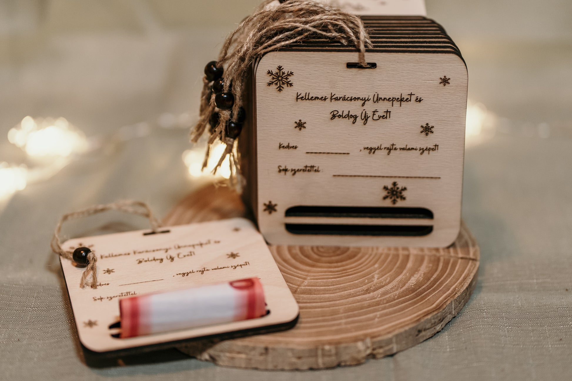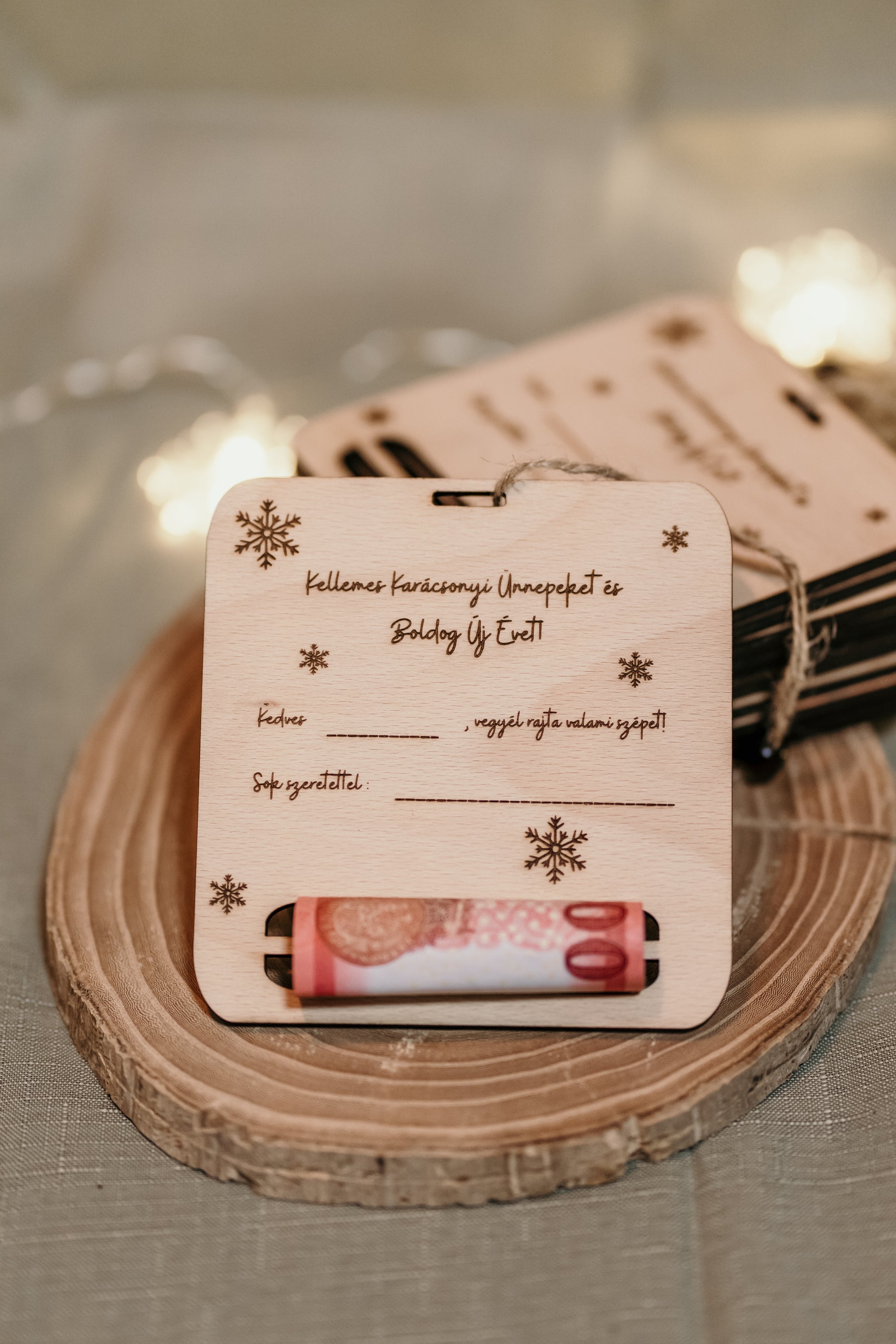 Névre szóló karácsonyi üdvözlőlap, pénztartóval