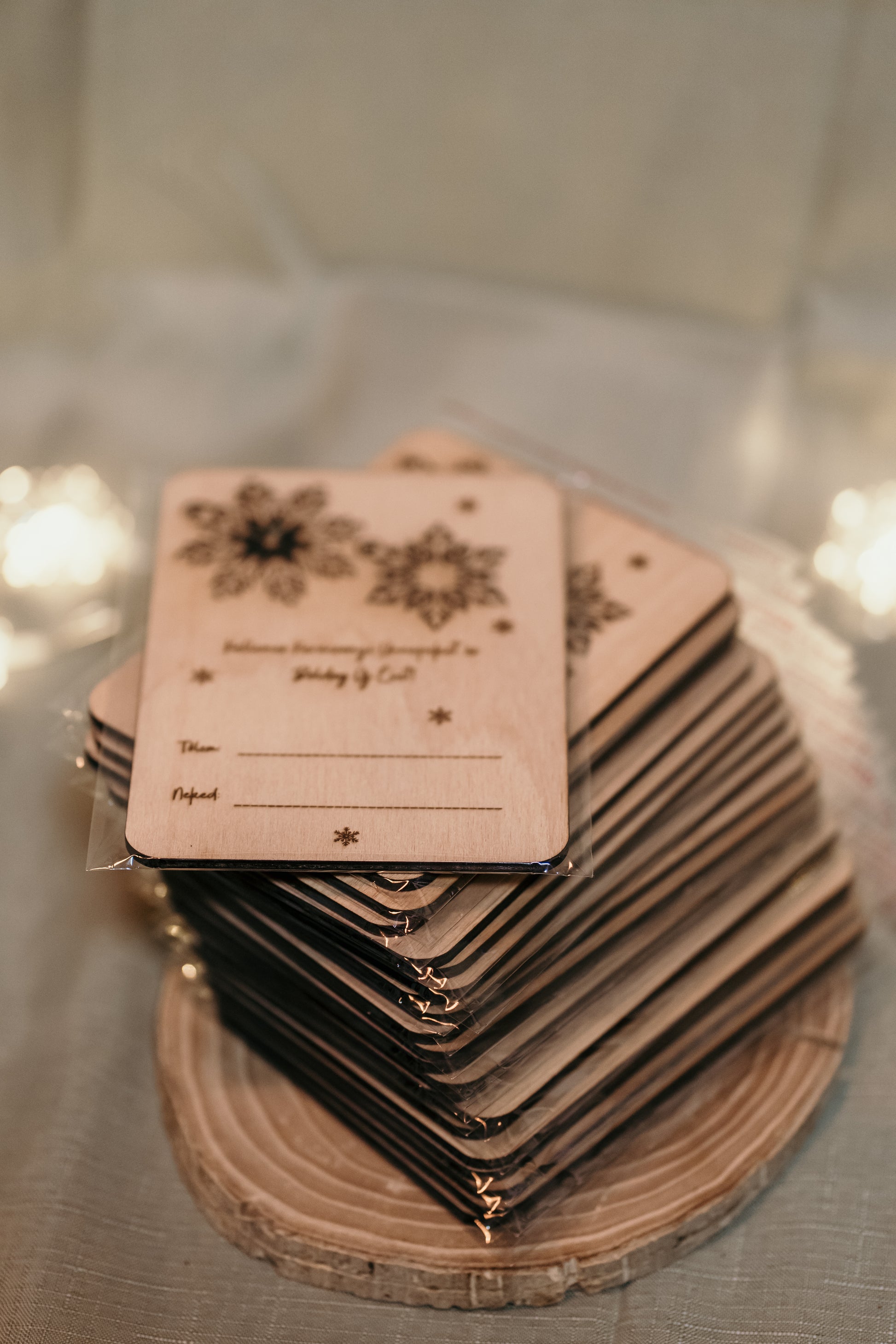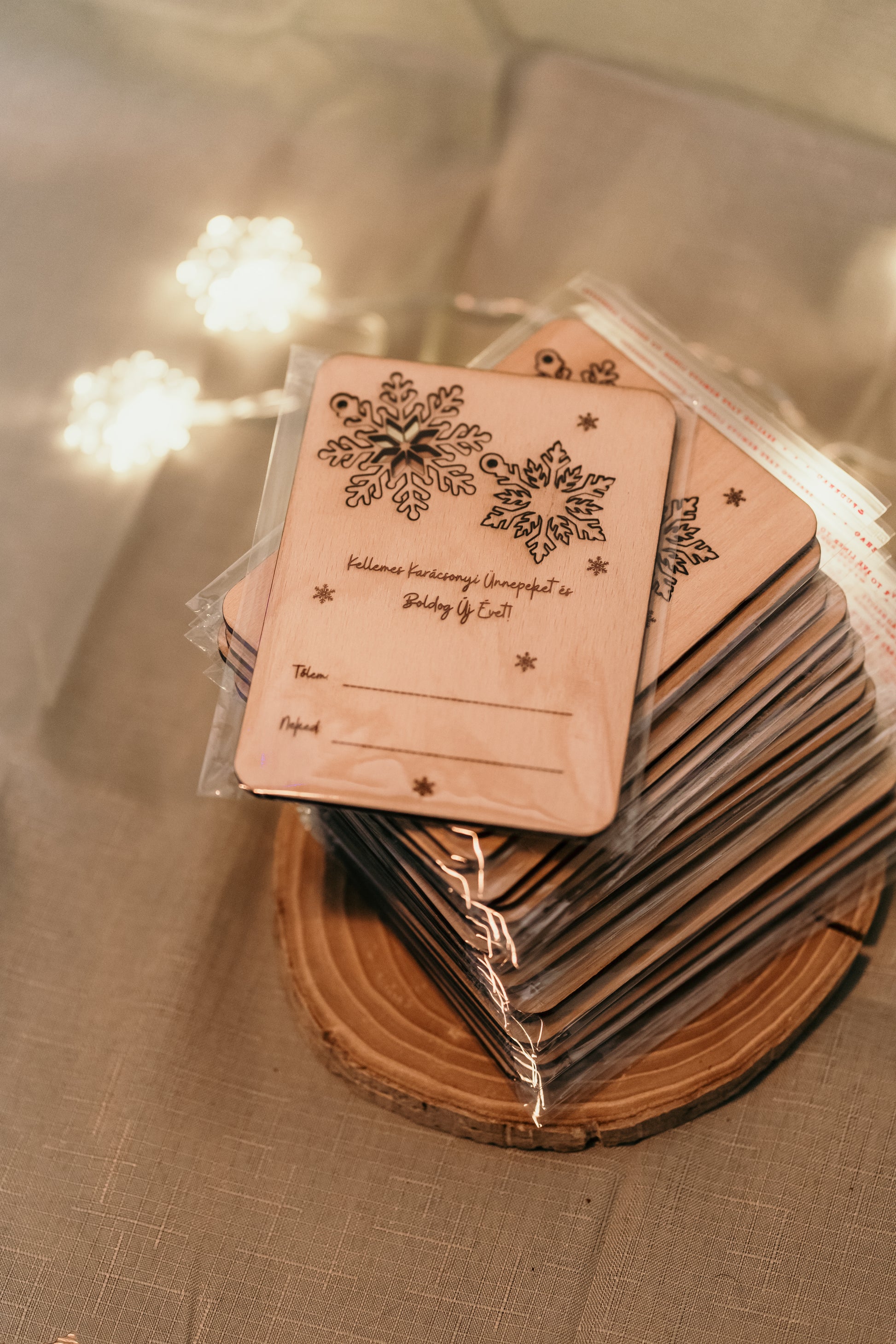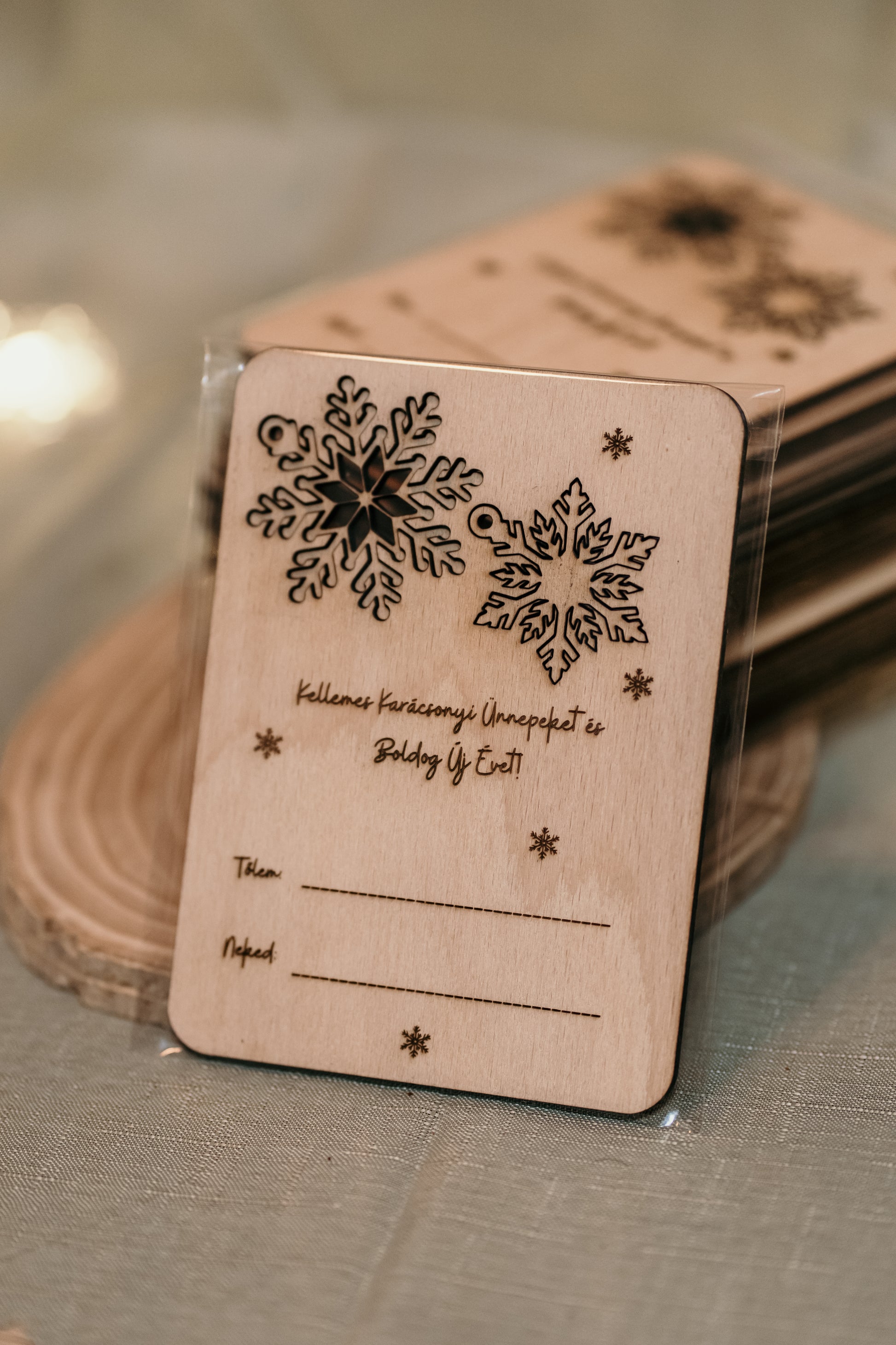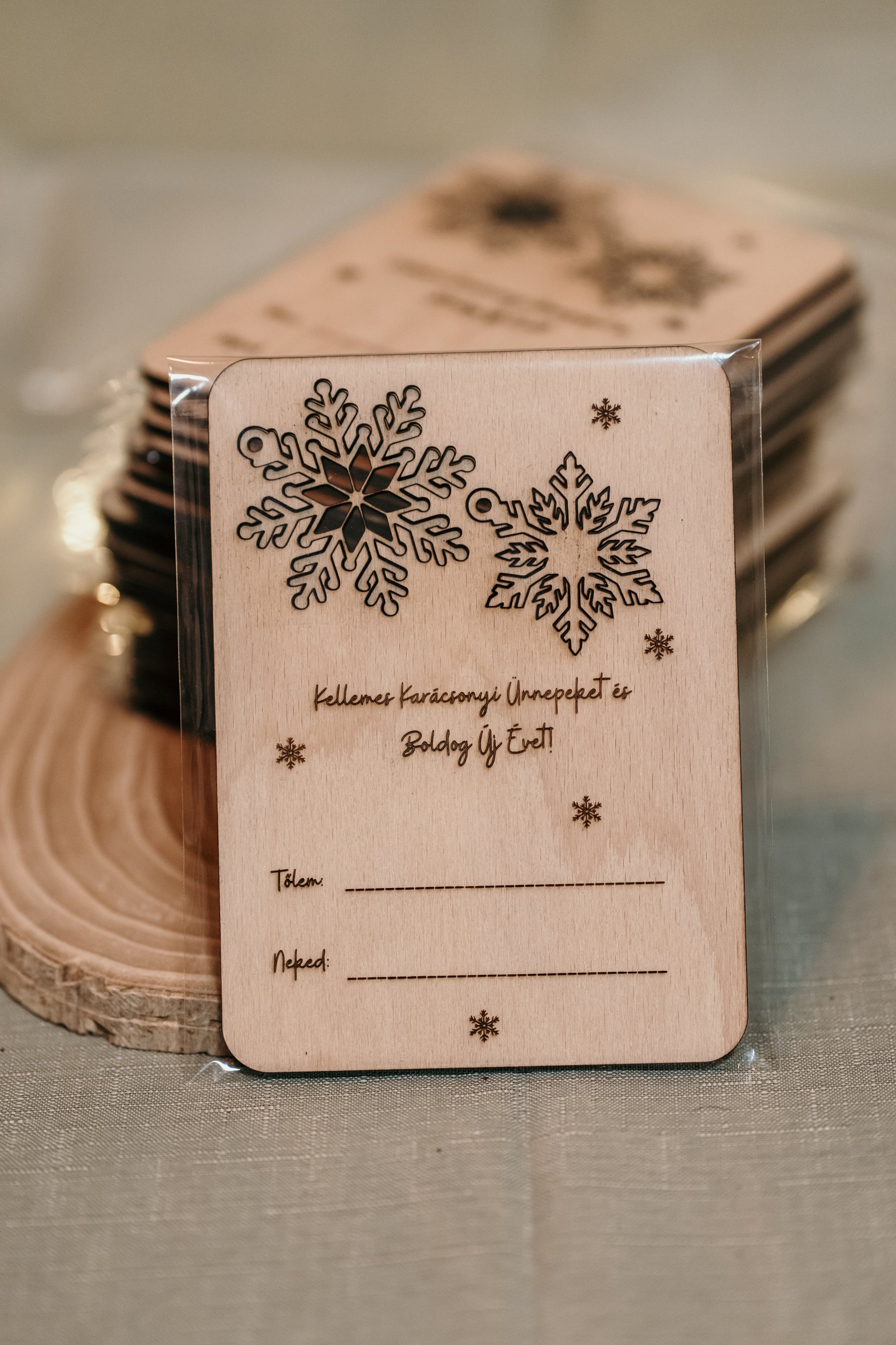 Névre szóló karácsonyi üdvözlőlap, kiszedhető karácsonyfadíszekkel